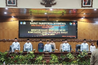 Puncak peringatan Hari Jadi Kabupaten Tanjung Jabung Barat ke-60 ditandai dengan digelarnya Rapat Paripurna Istimewa oleh DPRD Kabupaten Tanjung Jabung Barat, Minggu (10/8).