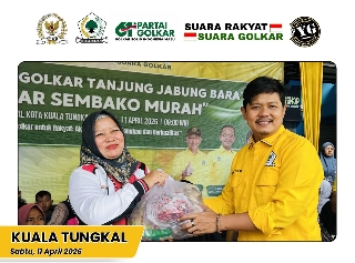 Syufrayogi Syaiful yang juga menjabat sebagai Ketua Komisi II DPRD Tanjab Barat sekaligus Sekretaris Fraksi Golkar menegaskan, kegiatan ini merupakan bentuk nyata kehadiran partai di tengah masyarakat, terutama dalam menghadapi tekanan ekonomi akibat kenaikan harga bahan pokok.